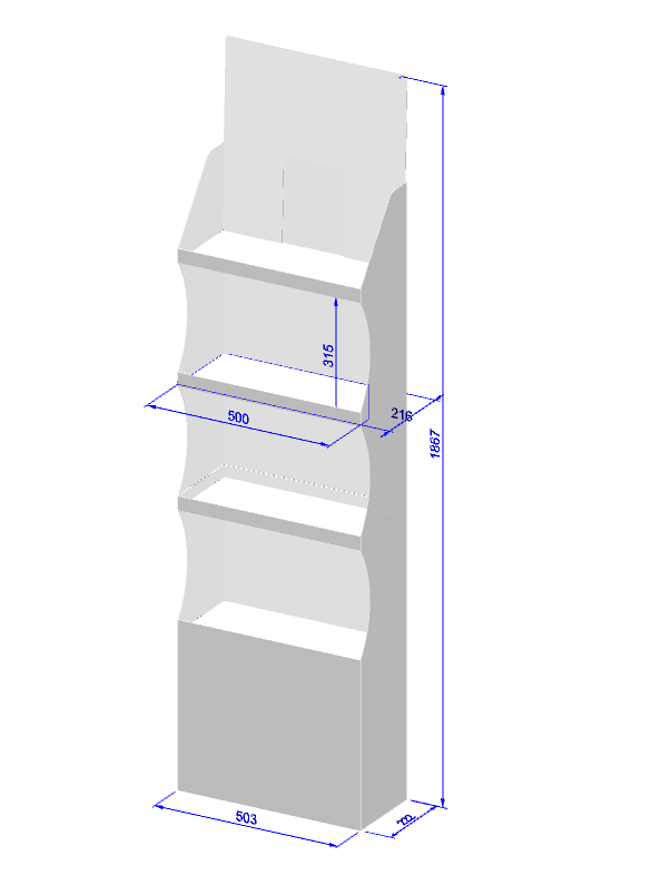 Un présentoir de sol avec étagères pour charge légère. Ce présentoir est ultra rapide à monter et économique. Il est adapté aux charges légères et son emprise au sol est minimale.